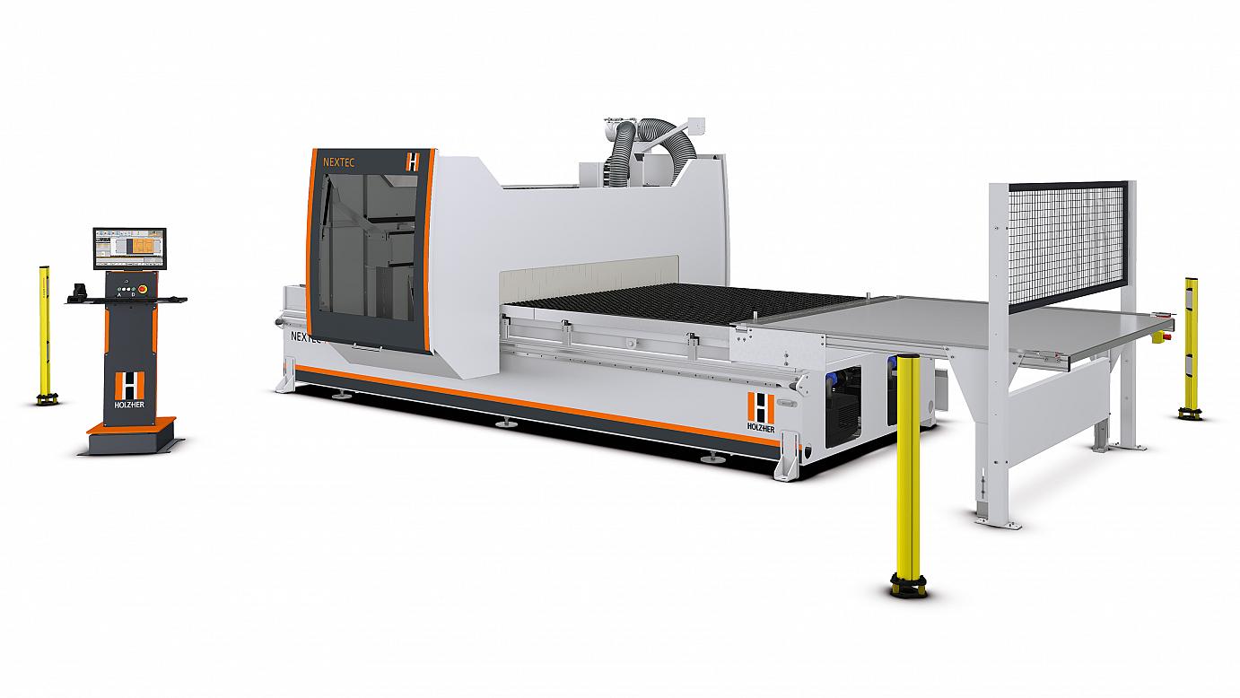 La nueva serie NEXTEC CNC de HOLZ-HER revoluciona la manera en la que trabajan los carpinteros, y los equipa para los retos que depara el futuro. La máquina es la única solución completa para presentar los muebles puntualmente, producirlos eficientemente y venderlos eficazmente. La NEXTEC hace la producción de muebles más económica y fácil. No tiene más que elegir los muebles deseados y depositarlos en la cesta de producción. ¿Problemas con las medidas del mueble seleccionado a producir? No hay problema: Utilizando los parámetros de alto, ancho y fondo, así como las definiciones de material y revestimiento, podrá adaptar cada objeto según sus deseos y producir así un mueble a medida individualmente. Los centros de mecanizado de NEXTEC disponen de un diseño especialmente estable de la máquina con diseño Gantry. Componentes de precisión garantizan la tecnología de control y accionamientos dando la máxima dinámica y perfección a las piezas de trabajo. La NEXTEC también está disponible con componentes de automatización para aumentar aún más la producción