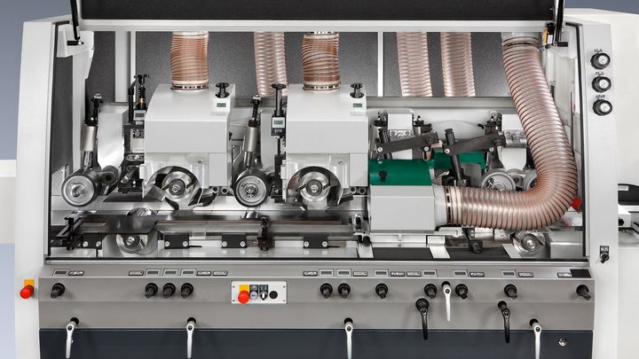Modelo más sofisticado de la serie de máquinas de alta velocidad Hydromat para empresas cuyo volumen de producción es extremadamente elevado y cuyas exigencias a la superficie y al rendimiento son muy altas. Gracias a los husillos verticales, dispuestos uno frente a otro, obtendrá una paralelidad absoluta en la anchura. Mediante rodillos de avance grandes, equipados con rodamientos de bolas en ambos lados y dispuestos sobre y en la mesa, el sistema de avance sumamente fiable asegura el transporte continuo, incluso cuando las condiciones de la madera son muy difíciles.